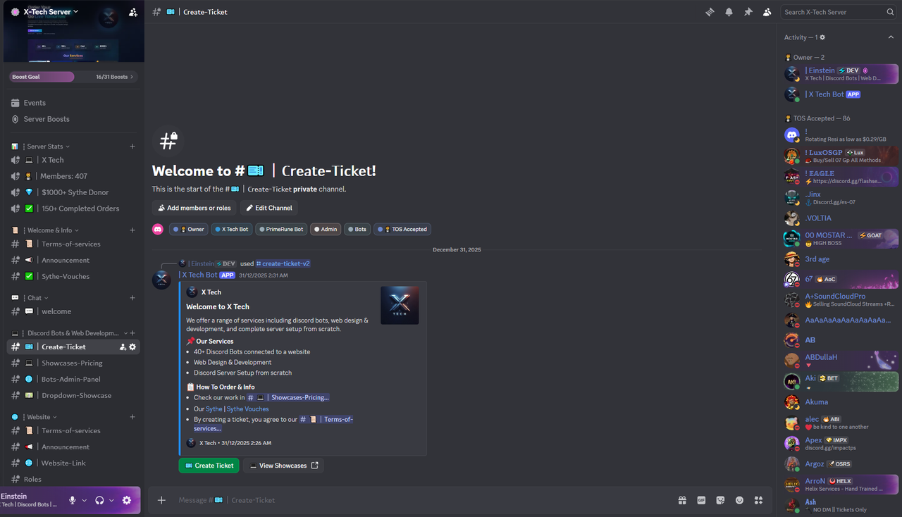 "Brought some bots and Einstein was very helpful & Friendly, Set up my discord Server and kept me well informed, Will be back for more. "